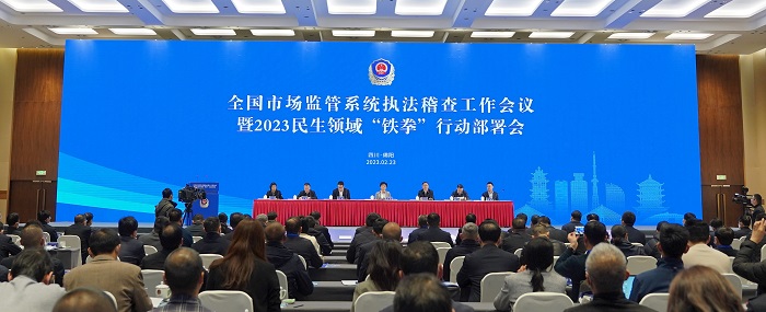 全國(guó)市場(chǎng)監(jiān)管系統(tǒng)執(zhí)法稽查工作暨2023民...  2月23日,全國(guó)市場(chǎng)監(jiān)管系統(tǒng)執(zhí)法稽查工作會(huì)議暨2023民生領(lǐng)域“鐵拳”行動(dòng)部署會(huì)在四川省綿陽市舉行。會(huì)議全面貫徹黨的二十大精神,深入落實(shí)全國(guó)市場(chǎng)監(jiān)管工作會(huì)議部署...